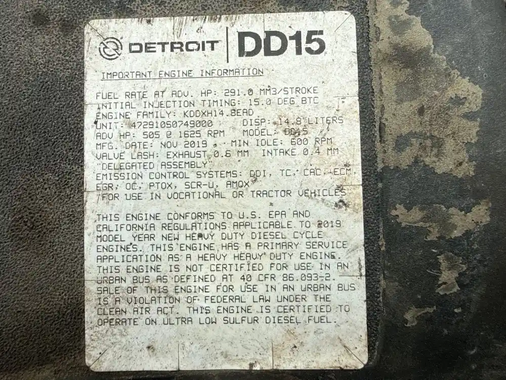(Core) Engine does Turn 360 degrees Complete, 2019 Detroit DD15, ENGINE ASSEMBLY- Family Number: KDDXH14.8EAD, Displacement: 14.8L, Horsepower: 505, Serial Number: 472910S0749000 Part Number: C01-00237-172, E.C.S: DDI, TC, CAC, ECM, EGR, OC, PTOX, SCR-U, AMOX, Reference images for condition