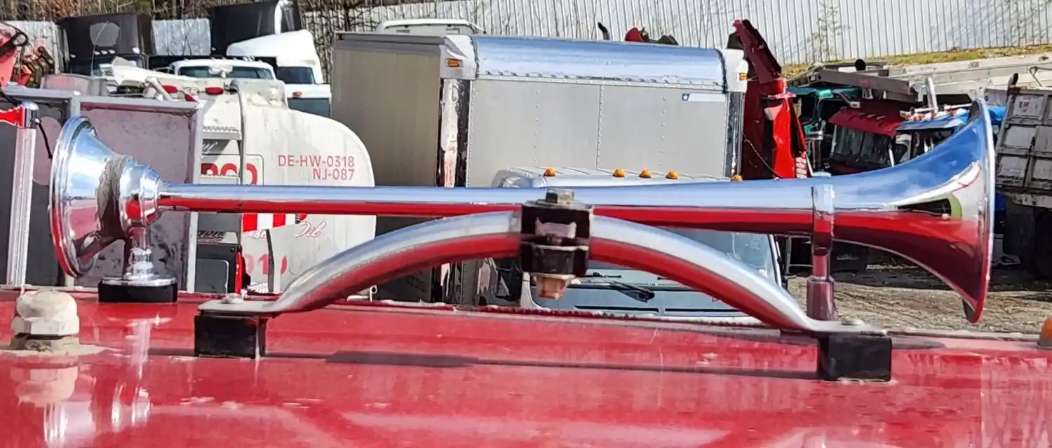 (Used) 1989 Mack MC688FC, AIR HORN- Location: Above The Cab, Side: Driver Left Side, Material: Chrome, Reference images for condition,