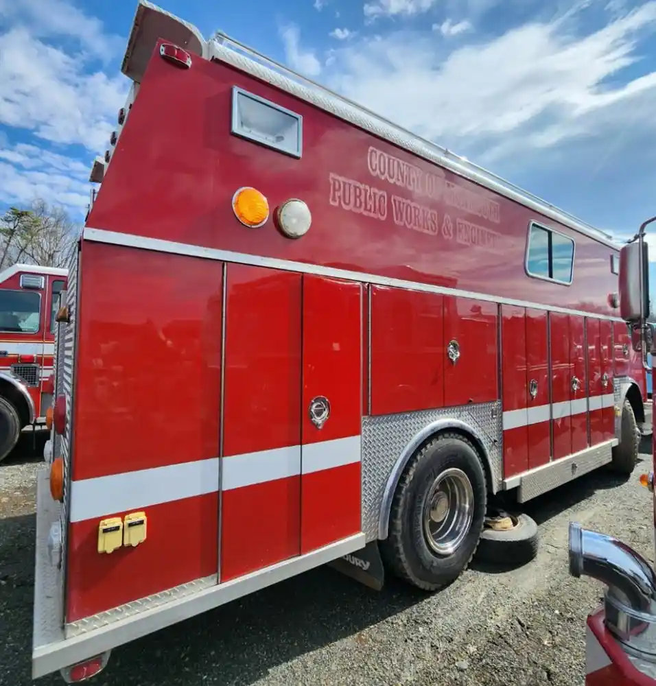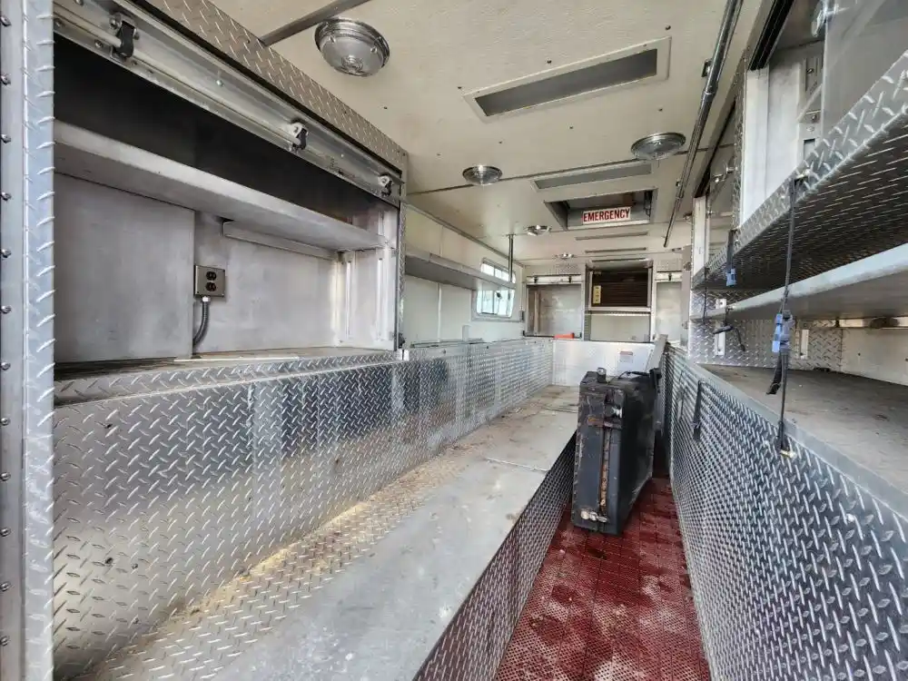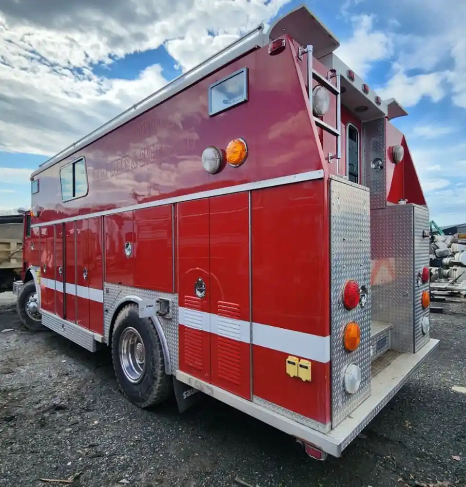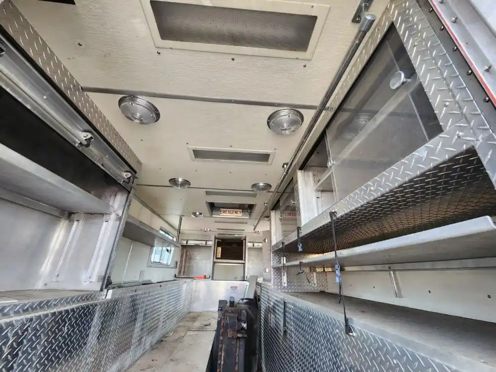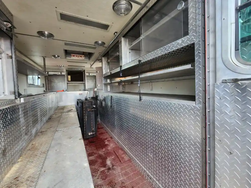 (Used) 1989 Mack MC688FC, RESCUE BOX BODY- Rescue Body With Rear Entry Door, and Storage in Rear With Heat, Make: Rescue Box Body, Color: Red, Material: Aluminum, Dimensions: Length: 21.10FT, Height: 8.11FT, Width: 8FT, Reference images for condition,