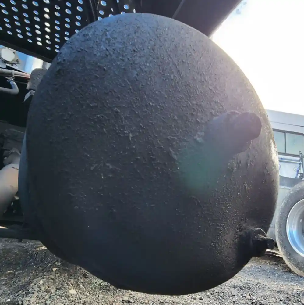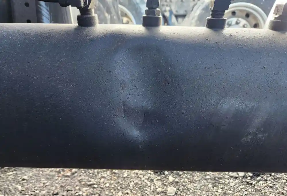 (Used) 2000 Kenworth W900, AIR TANK (3)- Side: Passenger Right Side, Location: Under The Frame, Material: Steel, Dimensions: L=44", D=10", Front Ports: 2, Rear Ports: 2, Side Ports: 6, It's Dented, Damage Reference images for condition,