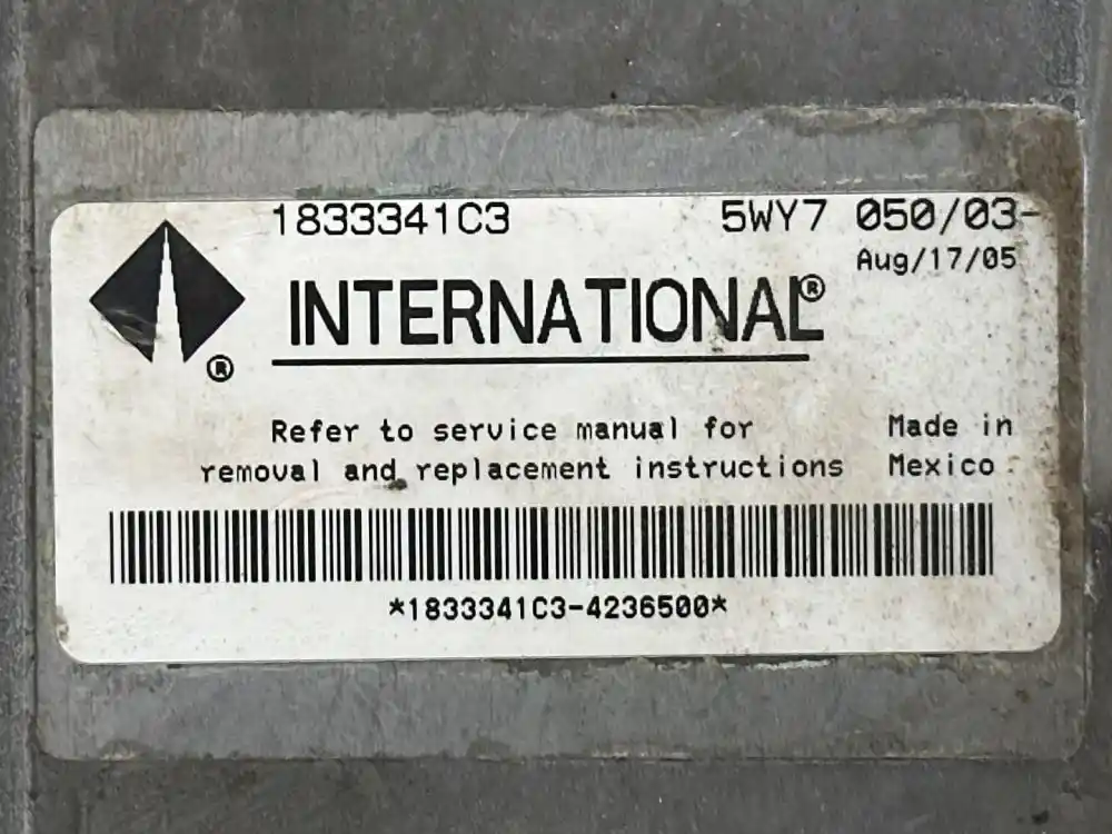 (Used) 2001 International DT466 ENGINE ECM - Part Number: 1833341C3, Serial Number: 1833341C3, 1833341C3-4236500, Model: 5WY7 050/01 Type Plug: 2 Rectangular, Pin Plug: 1 Plug of 60 Pins, 1 Plug of 60 Pins,