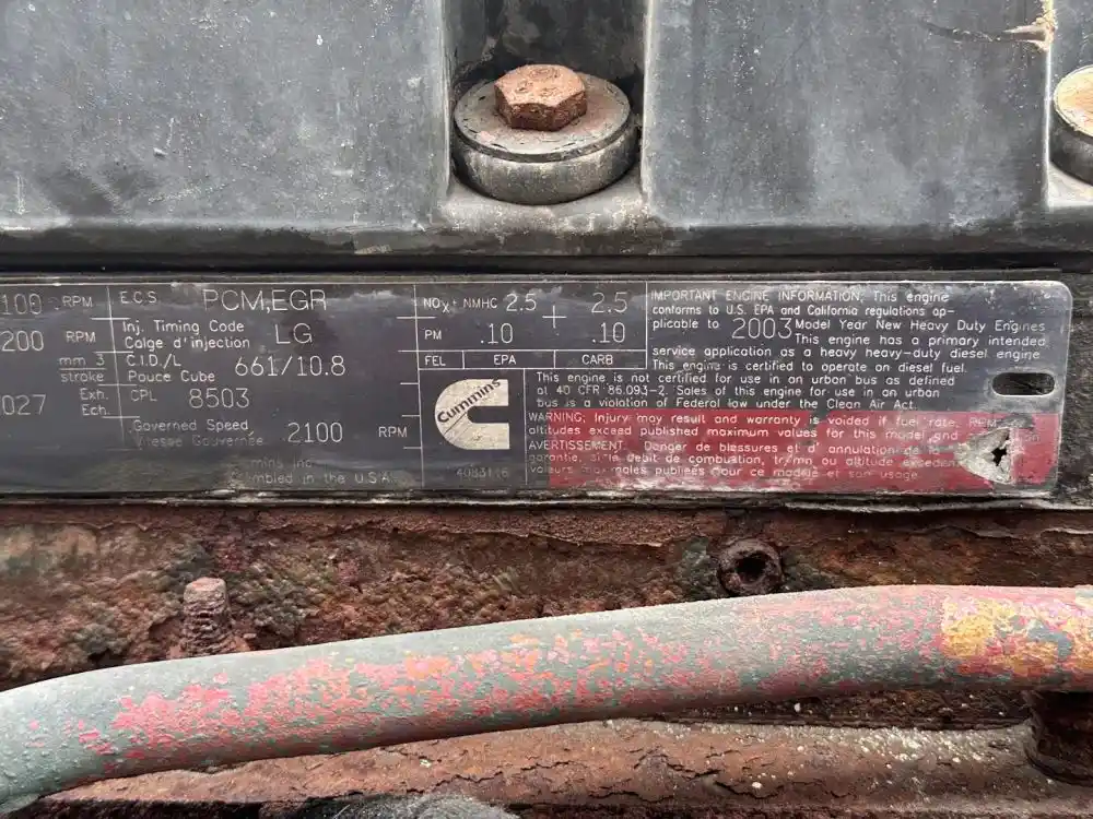 (Used) 2003 Cummins ISM, ENGINE ASSEMBLY- Family Number: 3CEXH0661MAT, Displacement: 10.8L Horsepower: 350, CPL: 8503, Part Number: GUSV00562, E.S.N.: 35085453, Reference images for condition. ,