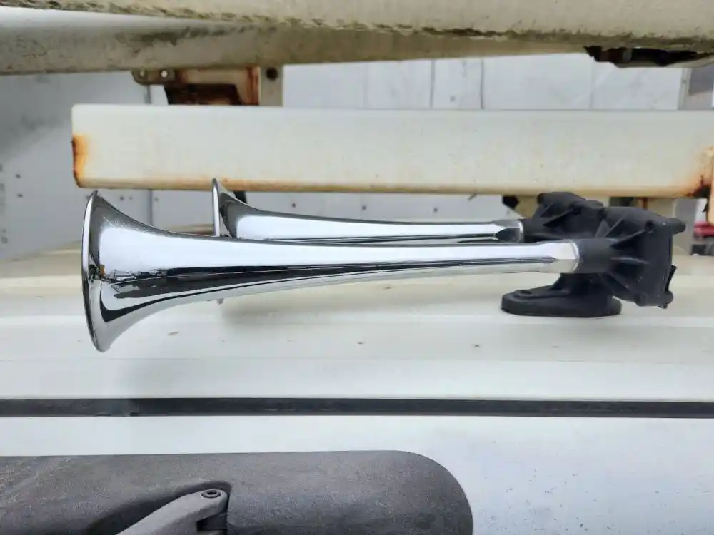 (Used) 2003 International 4300, AIR HORN- Part Number: T-293527, Side: Driver Left Side, Location: Top Cab, Material: Chrome, Length: 15.5", Reference images for condition, ,