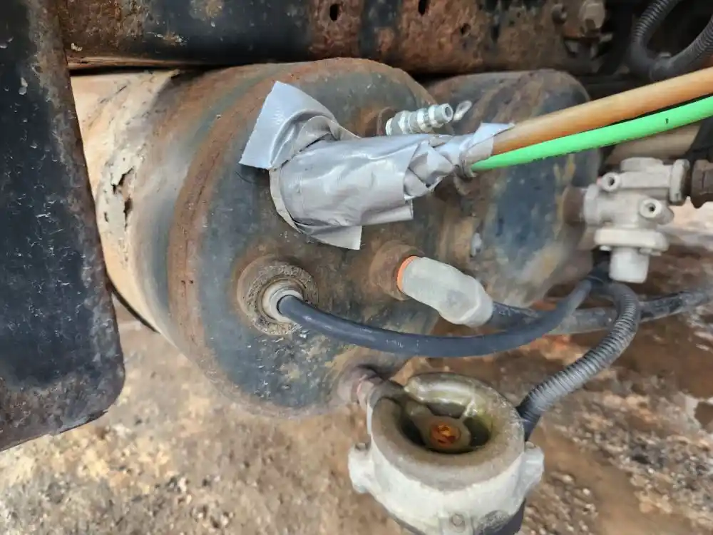 (Used) 2003 International 4300, AIR TANK- Side: Driver Left Side, Location: Bottom Inside Tank, Material: Steel, Dimensions: L=30", D=8.5", Front Ports: 3, Rear Ports: 6, Side Ports: 0, It's Rusty!! Reference images for condition, ,