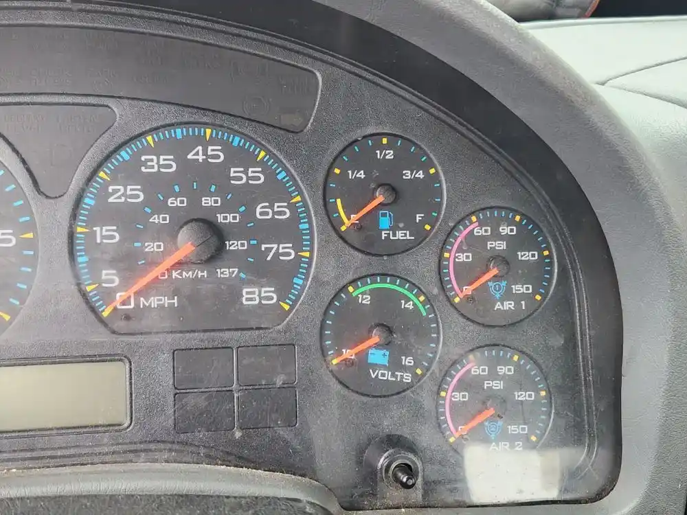 (Used) 2003 International 4300, INSTRUMENT CLUSTER- Gauges: Water Temperature, Engine Oil Pressure, RPM, MPH, Battery Volts, Fuel Level, Brake Air Pressure (1), Brake Air Pressure (2), Includes Controls: Exterior Lights, Dimmer lights, Material: Plastic, Reference images for condition, ,