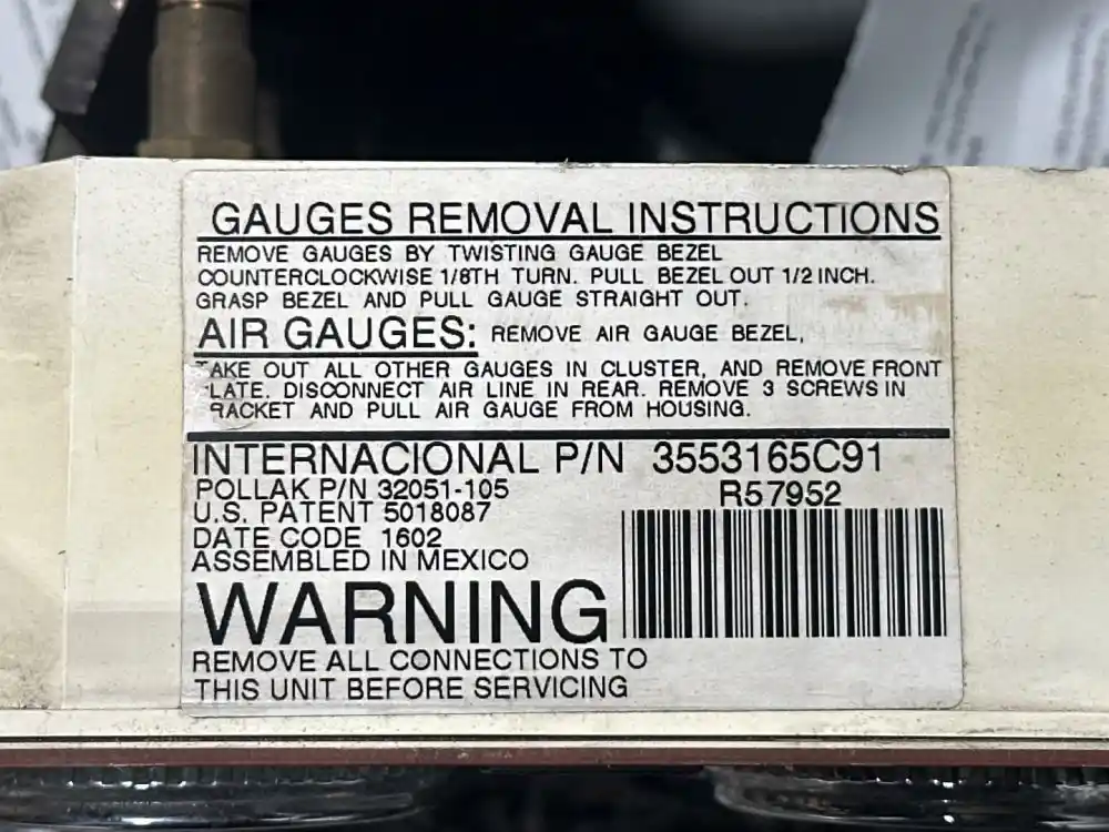 (Used) 2003 International 9900I, INSTRUMENT CLUSTER- Part Number: 3553165C91, Gauges: Air Pressure (1), Air Pressure (2), Fuel Level, Front Axle, Rear Axle, Transmission Fluid Temperature, Reference images for condition. ,
