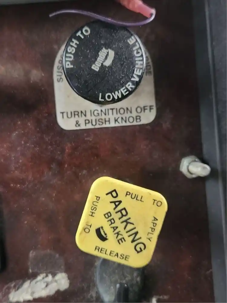 (Used) 2007 Freightliner M2 112 Medium Duty, MISCELLANEOUS DASH SWITCHES- Controls: Suspension Autofill Override Valve, Parking Brake, Material: Plastic, Reference images for condition,