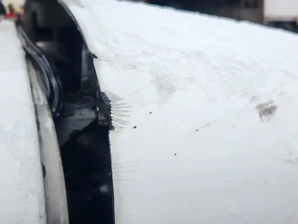 (Used) 2007 Peterbilt 330, HOOD ASSEMBLY- Part Number: L29-6028-201, Length: 44.¾", From Cowl to grille, Color: White, Material: Fiberglass, Has damaged on Passenger Right Side, Reference images for condition,