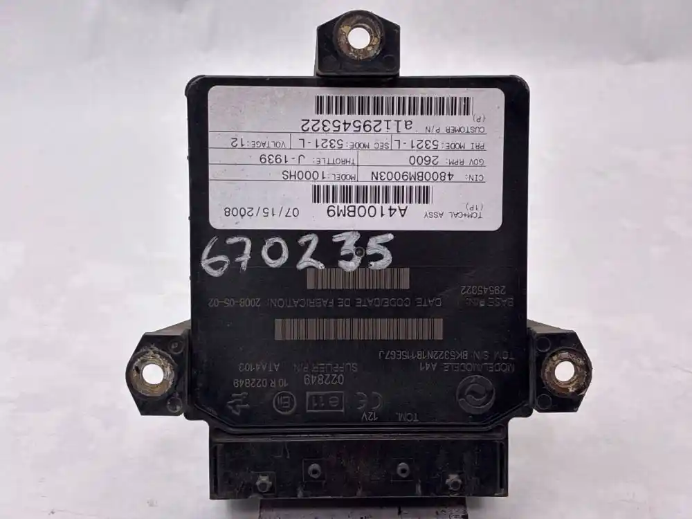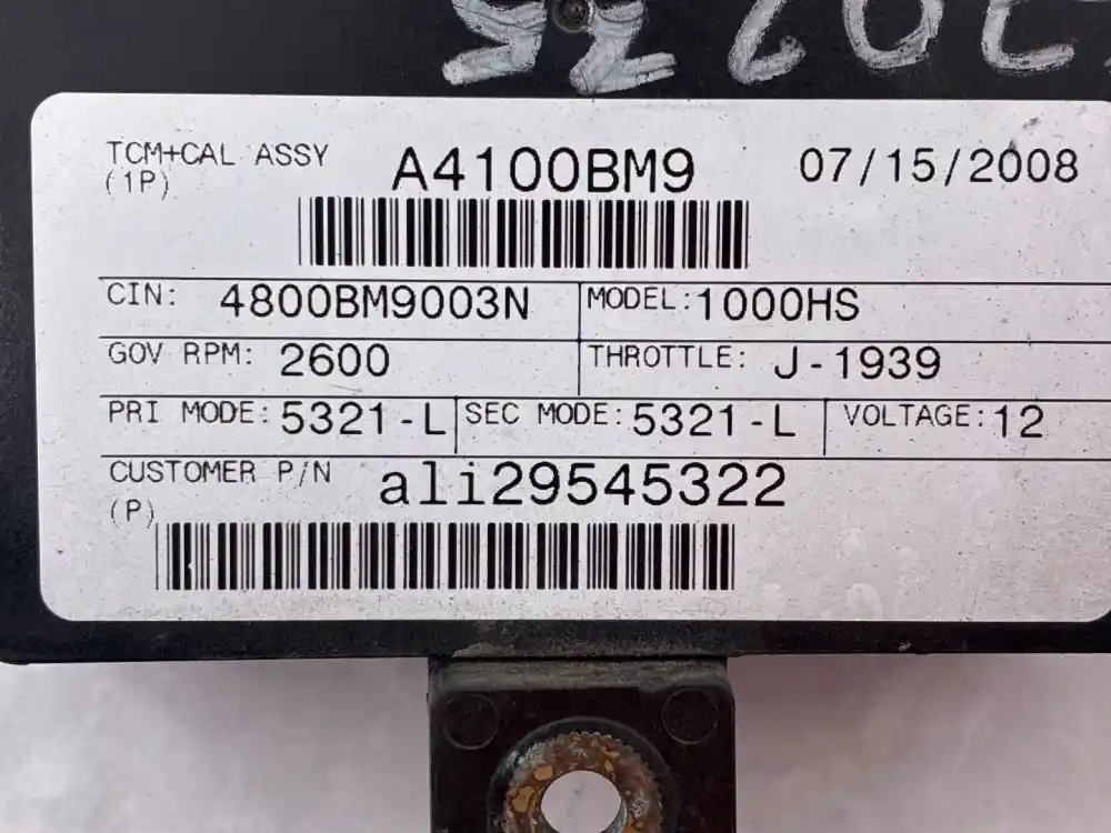 (Used) 2008 Allison 1000HS , TRANSMISSION ECM- Part Number: 29545322, Serial Number: BK5322N18115EG7J, 12 Volts A4100BM9, CIN: 4800BM9003N, GOV RPM: 2600, THROTTLE: J--1939, PRI MODE: 5321-L, SEC MODE: 5321-L, Customer P/N: ali29545322, E11, 022849, 10 R 022849, Supplier Number: ATA5101, MODEL: A41, Plug Pins: 80 Pins Plug Rectangular, Reference images for condition. ,