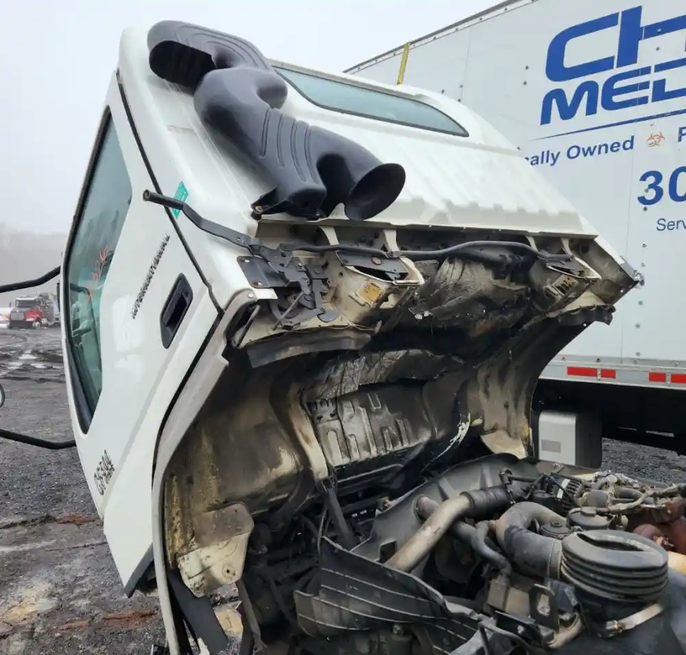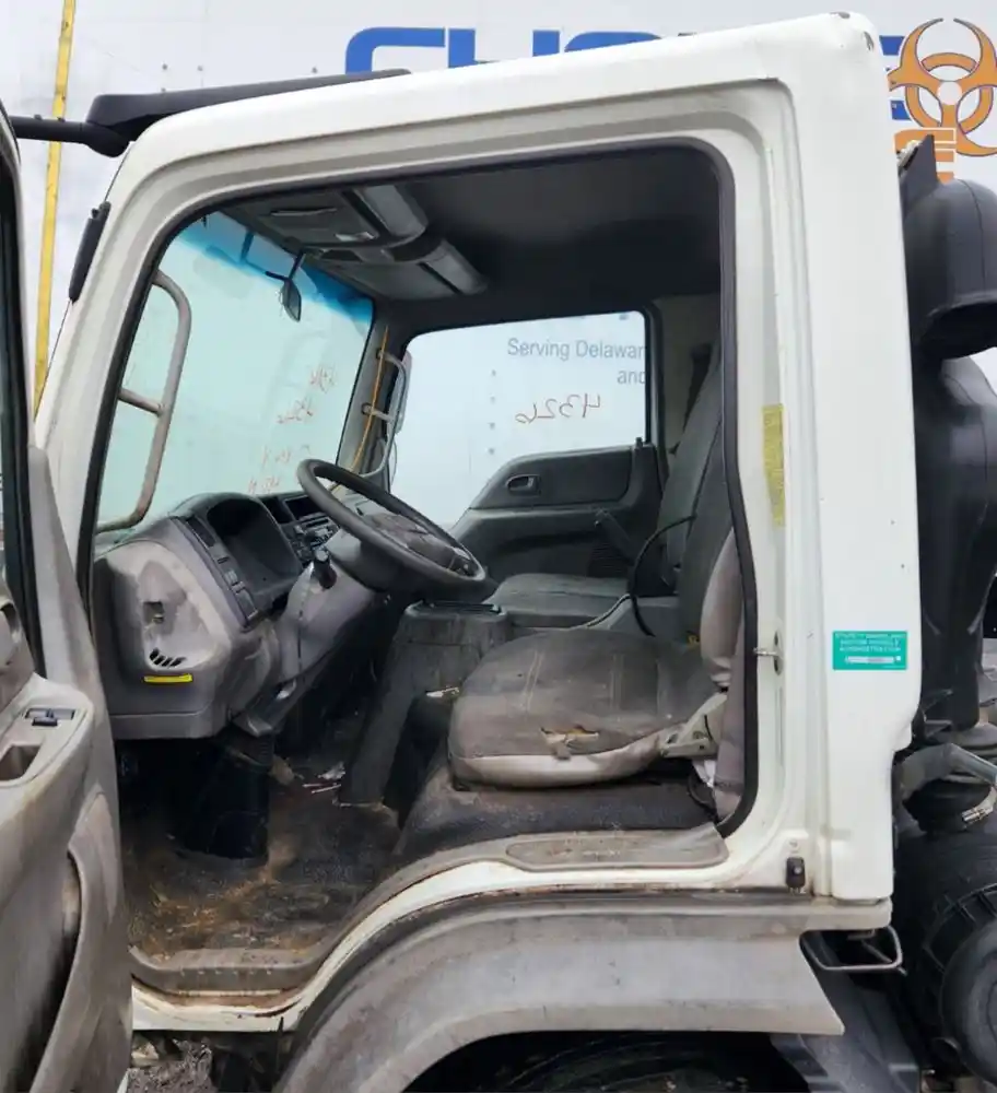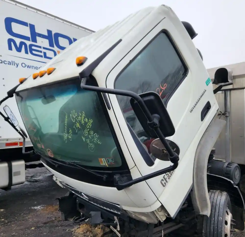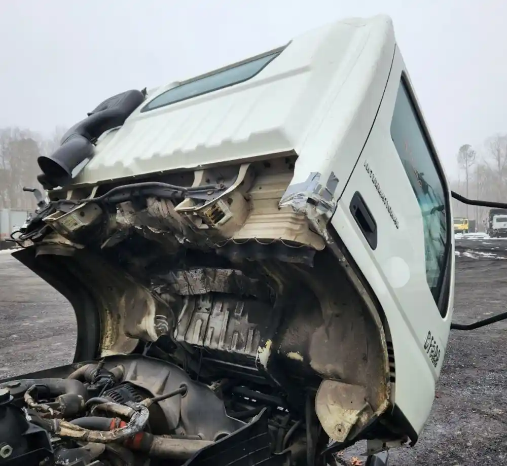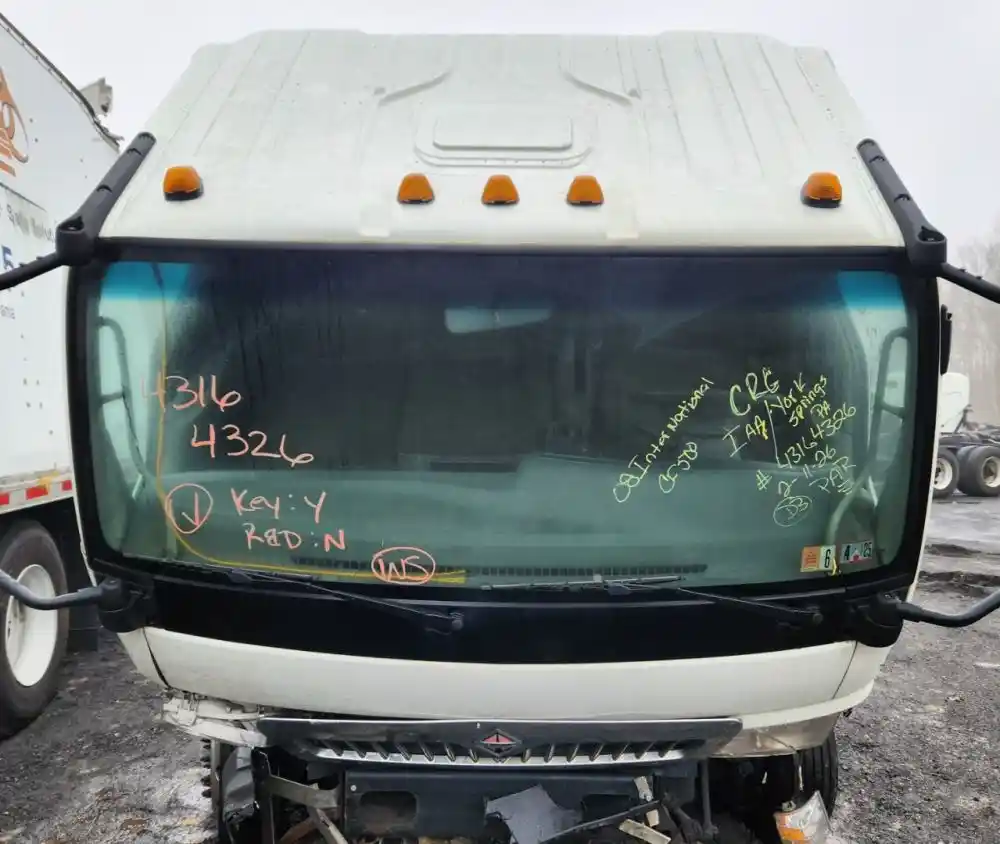 (Used) 2008 International CF500, CAB- Type: Day Cab, Engine: International VT275, Color: White, Less Interior, Less Doors Sold Separately, It's Dented, Damage Reference images for condition,