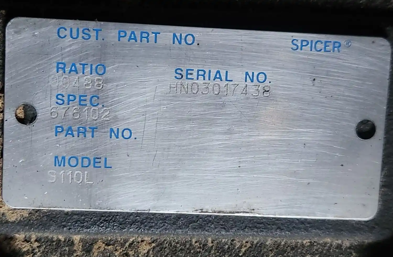 (Used) 2008 International CF500, DIFFERENTIAL HOUSING ONLY- Part Number: 676102, Serial Number: HN03017438, Make: Spicer, Model: S110L, Ratio: 4.88, Capacity: 11,000 Lbs, Suspension: Leaf Springs,