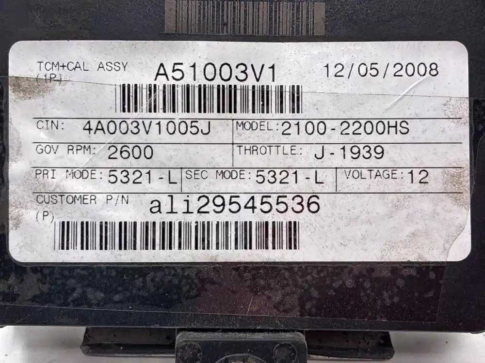 (Used) 2009 Allison 2200HS , TRANSMISSION ECM- Part Number: 29545322, Serial Number: BK5536N18281021B, 12 Volts A51003V1, CIN: 4A003V1005J, GOV RPM: 2600, THROTTLE: J--1939, PRI MODE: 5321-L, SEC MODE: 5321-L, Customer P/N: ali29545536, E11, 032849, 10 R 022849, Supplier Number: ATA5101, MODEL: A51, Plug Pins: 80 Pins Plug Rectangular, Reference images for condition. ,