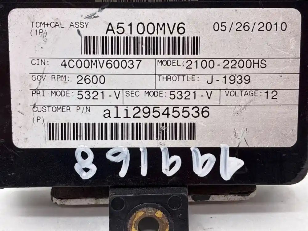 (Used) 2010 Allison 2100-2200HS (AT), TRANSMISSION ECM- Part Number: 29545536, Serial Number: BK5536N1011300E5, 12 Volts A5100MV6, CIN: 4C00MV60037, GOV RPM: 2600, THROTTLE: J--1939, PRI MODE: 5321- V, SEC MODE: 5321- V, E11, 032849, 10R022849, Supplier Number: ATA5101, Plug Pins: 80 Pins Plug Rectangular, Reference images for condition. ,