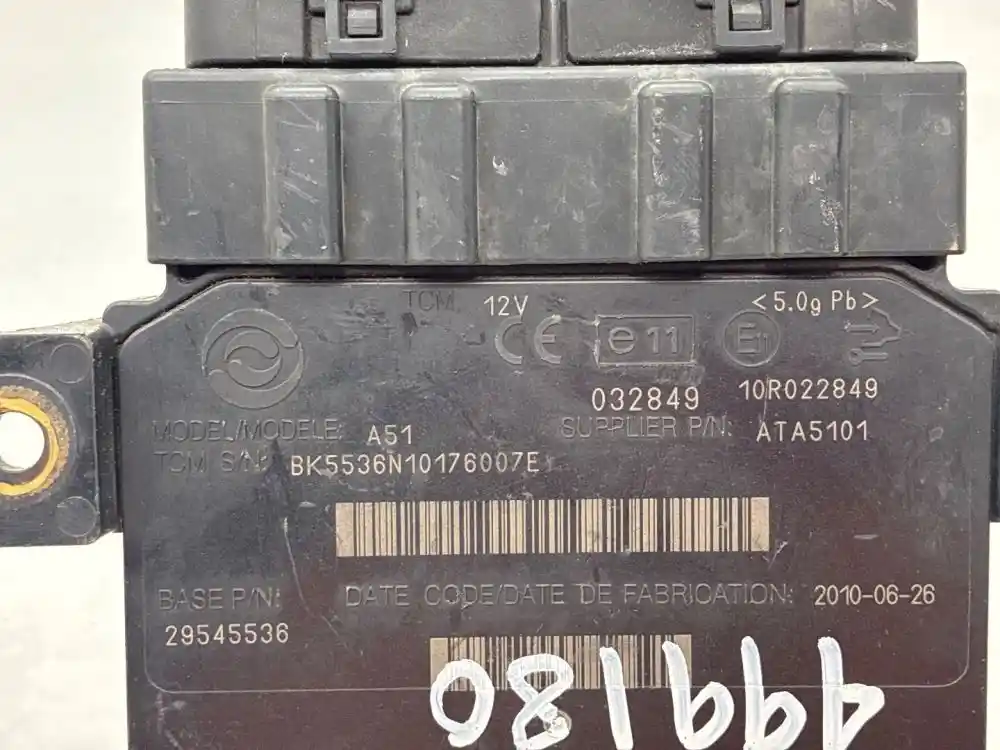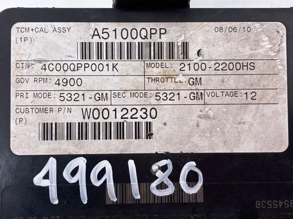 (Used) 2010 Allison 2100-2200HS, TRANSMISSION ECM- Part Number: 29545536, Serial Number: BK5536N10176007E, 12 Volts A5100QPP, CIN: 4C00QPP001K, GOV RPM: 4900, THROTTLE: GM, PRI MODE: 5321- GM, SEC MODE: 5321- GM, CUSTOMER PIN: W001230, E11, 032849, 10R022849, Supplier Number: ATA5101, MODEL: A51, Plug Pins: 80 Pins Plug Rectangular, Reference images for condition. ,
