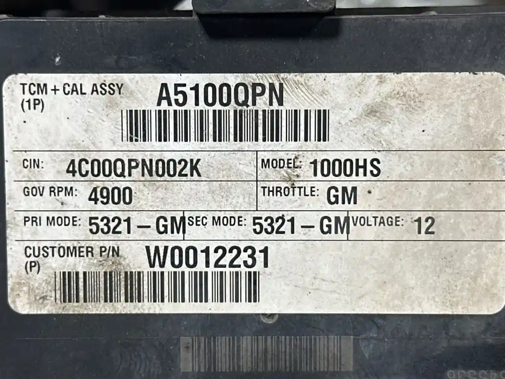 (Used) 2011 Allison 1000HS (AT), TRANSMISSION ECM- Part Number: 29545536, Serial Number: BK5536N111664091D, ECM Model: A51, 12 Volts A5100QPN, CIN: 4C00QPN002K, Transmission Model: 1000HS, GOV RPM: 4900 THROTTLE: GM PRI MODE: 5321- GM, SEC MODE: 5321- GM, E11, 032849 10R022849, SU Number: ATA5101, Base Part Number: 29545536, Plug Pins: 80 Pins Plug Rectangular, Reference images for condition. ,