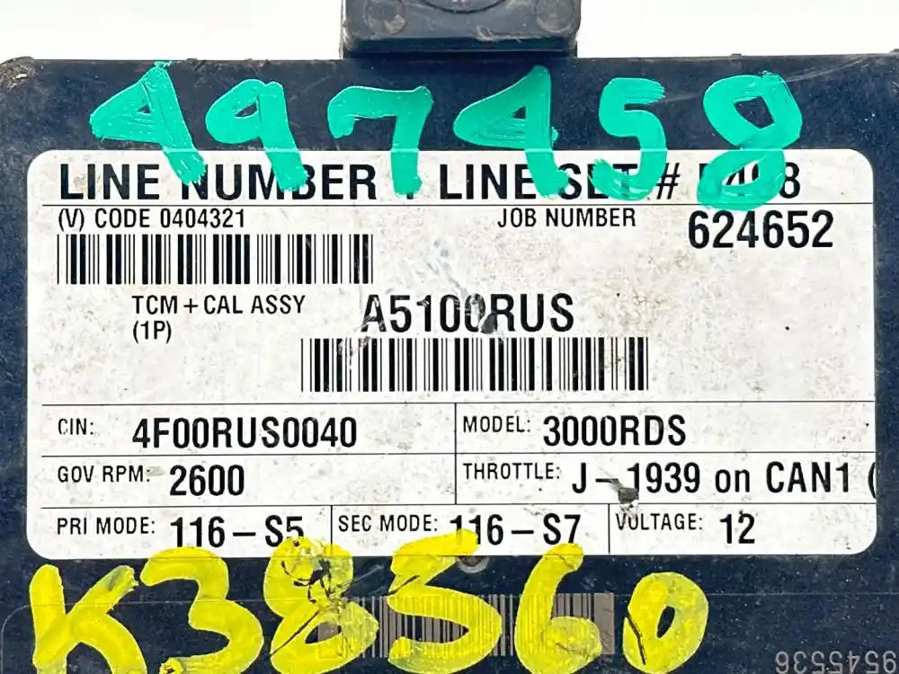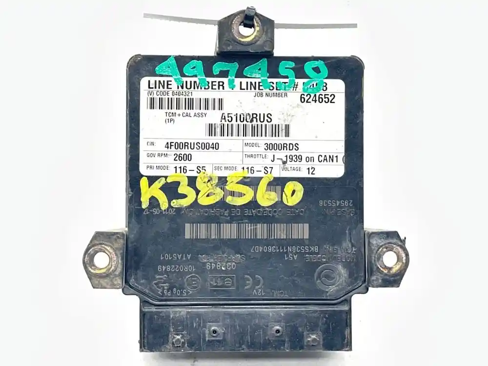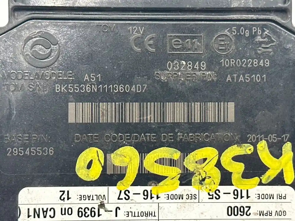 (Used) 2011 Allison 2200HS , TRANSMISSION ECM- Part Number: 29545536, Serial Number: BK5536N1113604D7, 12 Volts A5100RUS, CIN: 4F00RUS0040, GOV RPM: 2600, THROTTLE: J--1939, PRI MODE: 116-S5, SEC MODE: 116-S7, E11, 032849, 10R022849, Supplier Number: ATA5101, Plug Pins: 80 Pins Plug Rectangular, Reference images for condition. ,