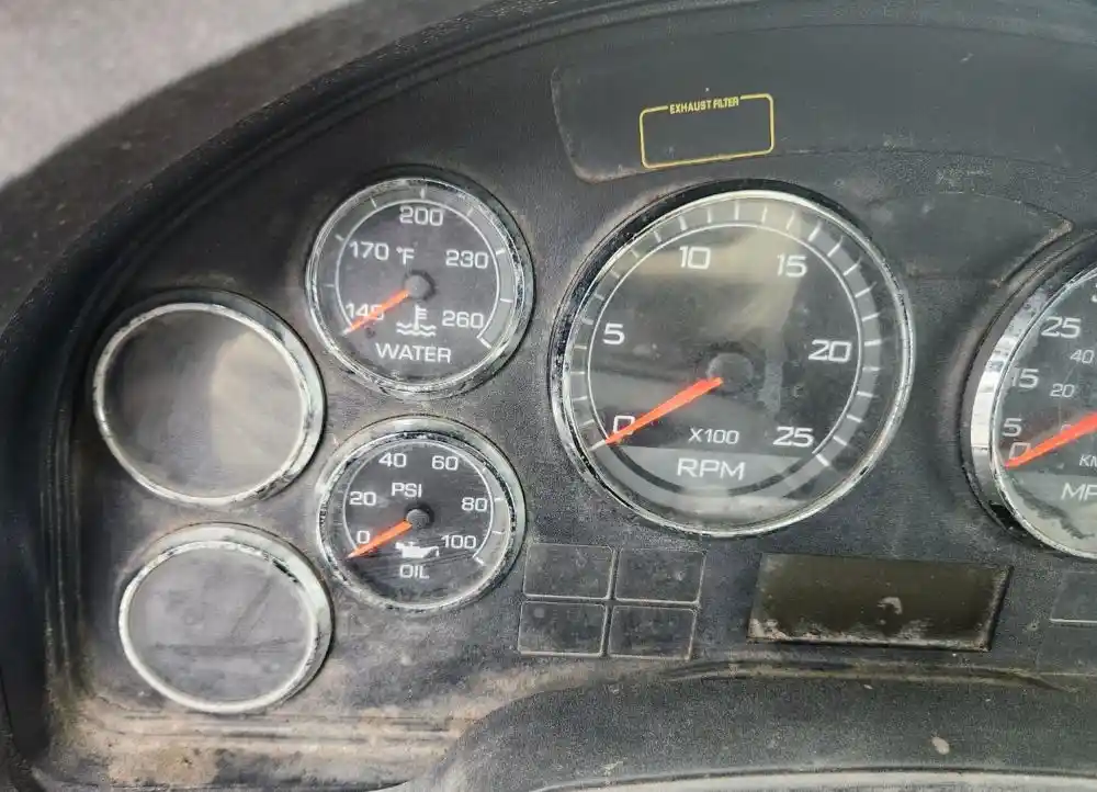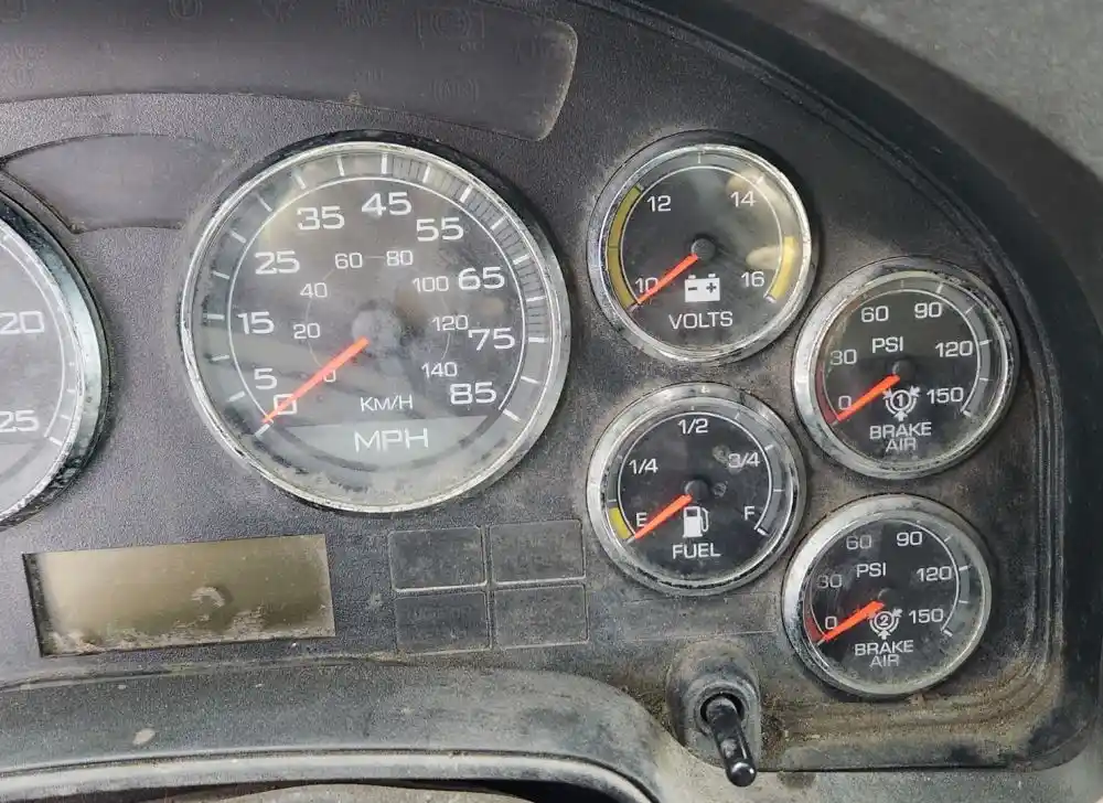 (Used) 2011 International PROSTAR, INSTRUMENT CLUSTER- Gauges: Water Temperature, Engine Oil Pressure, RPM, MPH, Battery Volts, Fuel Level, Brake Air Pressure, (P), Brake Air Pressure (S), Includes Controls: Auto, Work, Panel Lights, Cab Dome Door Off, Sleeper Dome, Floor Light, Material: Plastic, Reference images for condition,