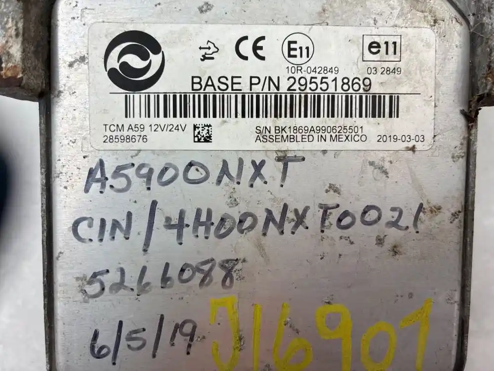 (Used) 2014 Allison, TRANSMISSION ECM- Part Number: 29550689, Serial Number: BK1869A990625501, A5900NXT, CIN: 4H00NXT0021, 5266088, TCM: A59, E11, 10R-042849, 1 Rectangular Plug with 80 Pins, Reference images for condition,