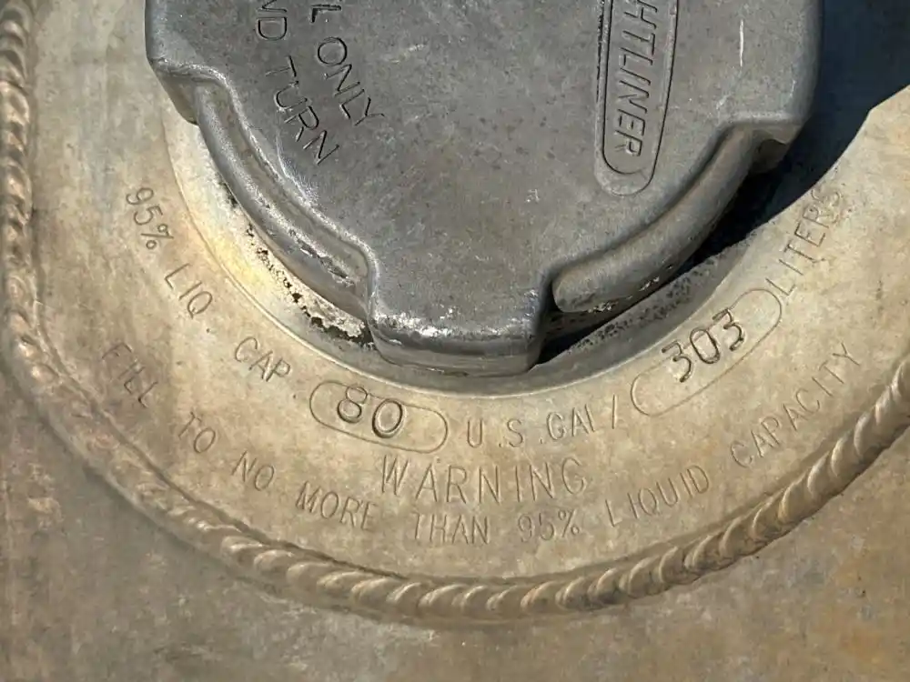 (Used) 2014 Freightliner Cascadia 113, FUEL TANK- Side: Passenger Right Side, Capacity: 80 Gallons, Material: Aluminum, Shape: Round, Dimensions: L=40”, D=25”, Reference images for condition. ,