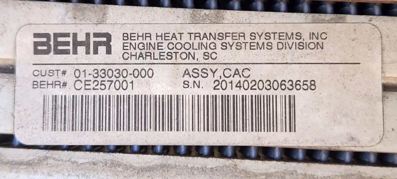 (Used) 2015 Freightliner M2 106, INTERCOOLER- Price is for Intercooler ONLY- Picture is for display only, Part Number: 01-33030-000, Engine: Cummins ISL, Dimensions: L=28 ¾", H=21 ½", Material: Aluminum, Less Radiator and Condenser Sold Separately, Reference images for condition,