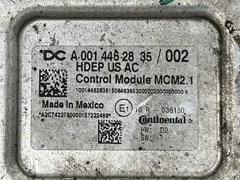 (Used) 2016 Detroit DD15, ENGINE ECM- Part Number: A 001 446 28 35/ 002, Serial Number: A2C742270000151222468, 10014462835150846365000002000000000 9, 10 R-036150, HW: D2, SW: - - -, Engine Information- Horsepower: 505, Displacement: 14.8L, 1 Rectangular Plug with 120 Pins , 1 Rectangular Plug with 21 Pins, Reference images for condition. ,