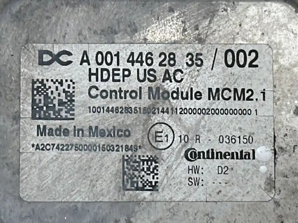 (Used) 2016 Detroit DD15, ENGINE ECM- Part Number: A0014462835, Serial Number: HDE0317220 59, A 001 446 28 35, 1000144628351502144112000002000000000 1, A2C7422750000150321849, E1 10 R- 036150, HW: D2, 1 Rectangular Plug with 120 Pins, 1 Rectangular Plug with 21 Pins, Reference images for condition. ,