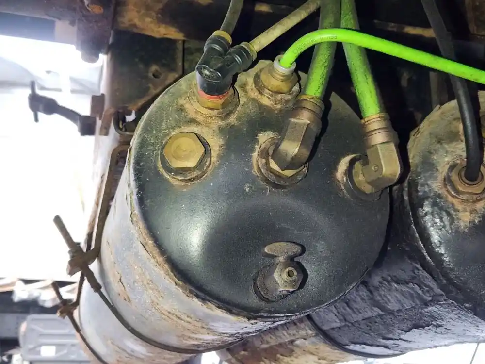 (Used) 2017 International DuraStar 4300, AIR TANK- Side: Driver Left Side, Location: Bottom Rear Tank, Material: Steel, Dimensions: L=30", D=8.5", Front Ports: 1, Rear Ports: 6, Side Ports: 0, It's Rusty!! Reference images for condition, ,