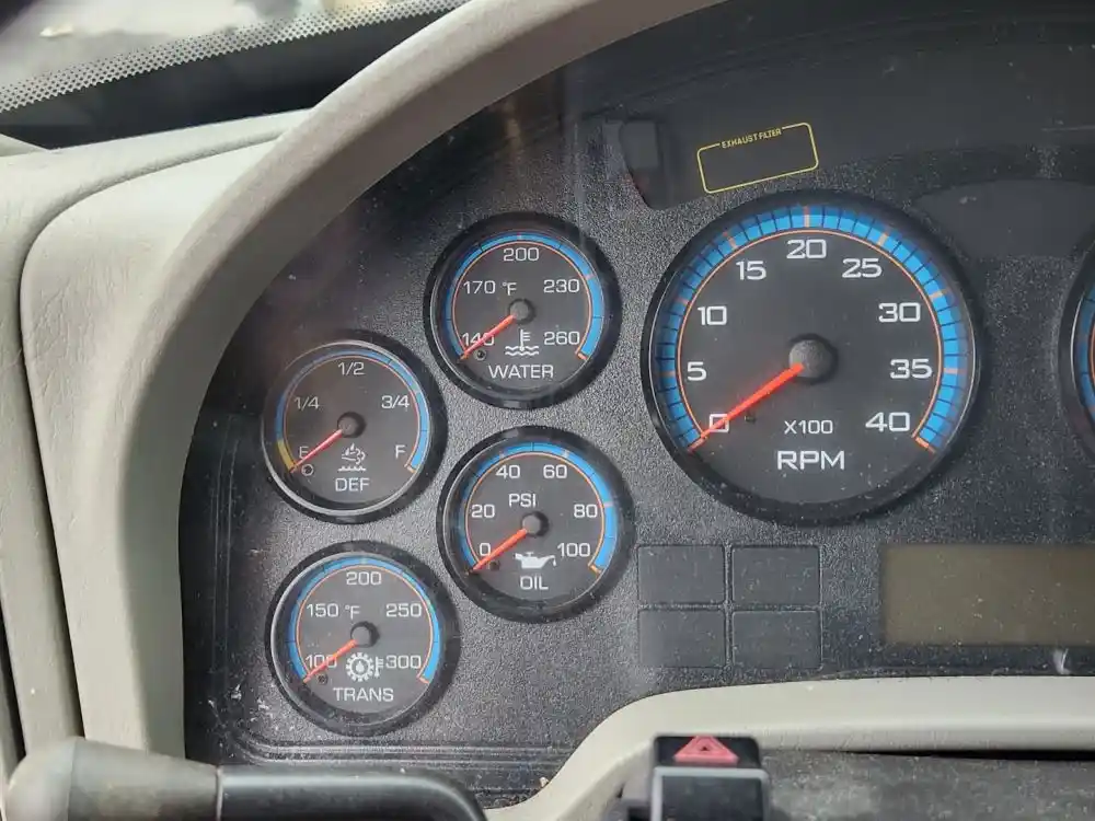 (Used) 2017 International DuraStar 4300, INSTRUMENT CLUSTER- Gauges: Water Temperature, DEF Level, Transmission Temp, Engine Oil Pressure, RPM, MPH, Battery Volts, Fuel Level, Brake Air Pressure (1), Brake Air Pressure (2), Includes Controls: Heat Mirror, Lamp Check, Exterior Lights, Dimmer lights, On-Work Light, Disab-6Th Gear, Material: Plastic, Reference images for condition, ,