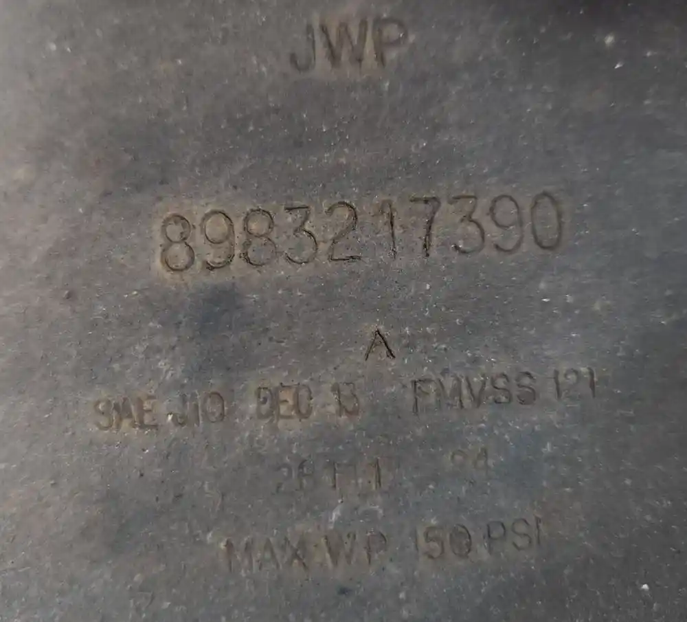 (Used) 2018 Isuzu FTR, AIR TANK (2)- Part Number: 8983217390, Side: Center Of Truck, Location: Rear, Material: Steel, Dimensions: L=20", D=12", Front Ports: 2, Rear Ports: 1, Side Ports: 1,