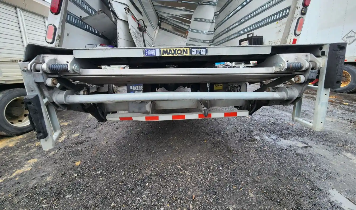 (Used) 2018 Isuzu FTR, POWER LIFT GATE- Serial Number: 1811466132, Make: Maxon, Model: GPT, Capacity: 3,000 Lbs, Platform Dimensions: L=8.6 FT, H=2.6 FT, Step Dimensions: L=7.4 FT, W=5.1 FT, Damage Reference images for condition,