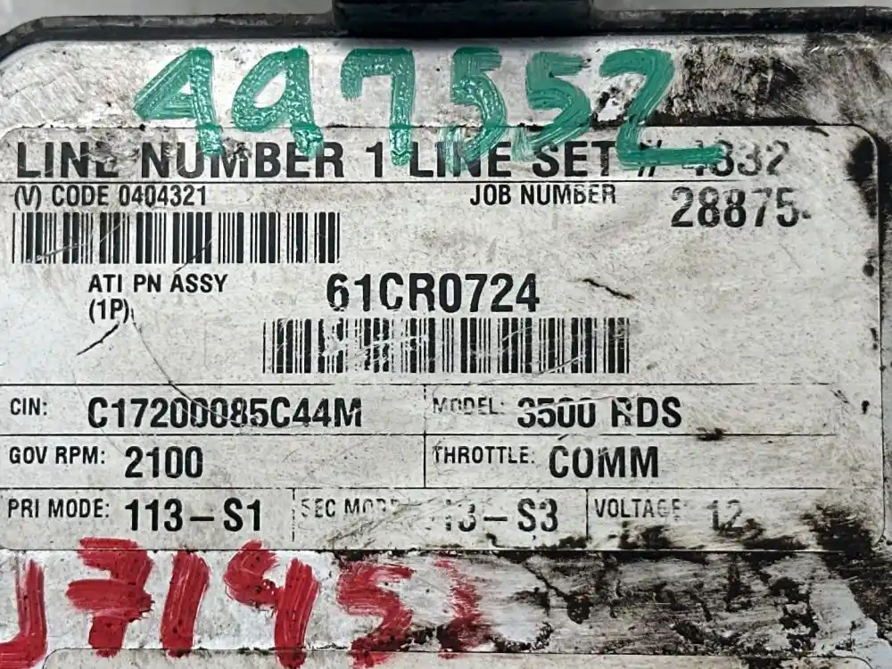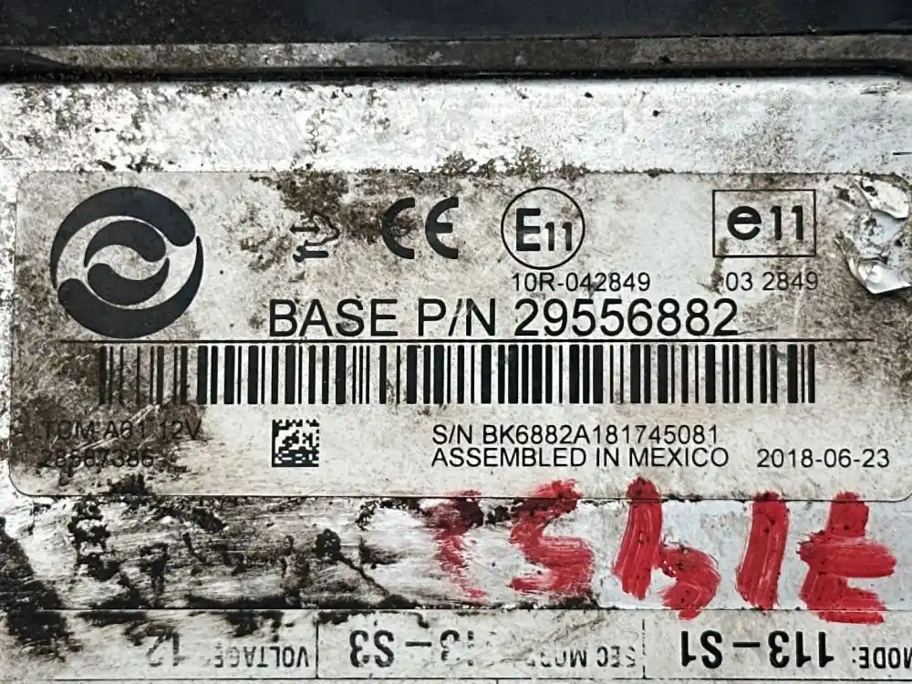 (Used) 2019 Allison 2500PTS, TRANSMISSION ECM- Part Number: 29556882, Serial Number: BK6882A181745081, E11, 10R-042849, 03 2849, (V) Code 0404321, ATI PN ASSY (1P) 61CR0724, CIN: C17200085C44M, MODEL: 3500 RDS, GOV RPM: 2100, THROTTLE: COMM, PRI MODE: 113-S1, SEC MODE: 113-S3, Voltage: 12 1 Rectangular Plug with 80 Pins, Reference images for condition,