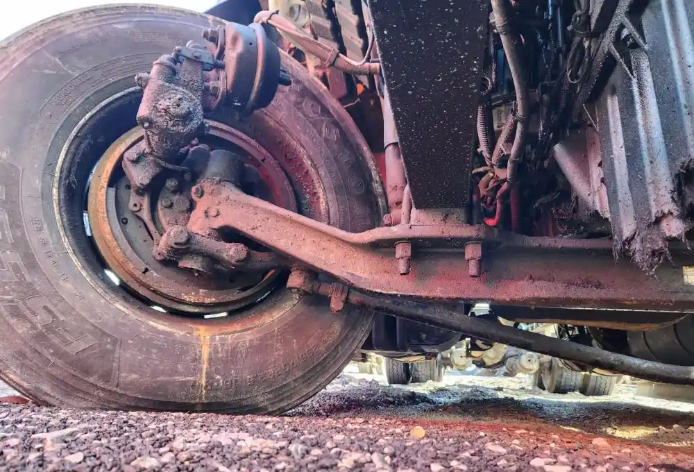 (Used) 2019 Freightliner Cascadia 126, COMPLETE FRONT AXLE- Part Number: C10-00023-049, Serial Number: 739912B0061361, Center Leaf to Center Leaf: 34", Make: Detroit, Model: F14.7-3N, Capacity: 14,700 Lbs, Hub Bolts: 10, Brake Type: Drum, Damage Reference images for condition,