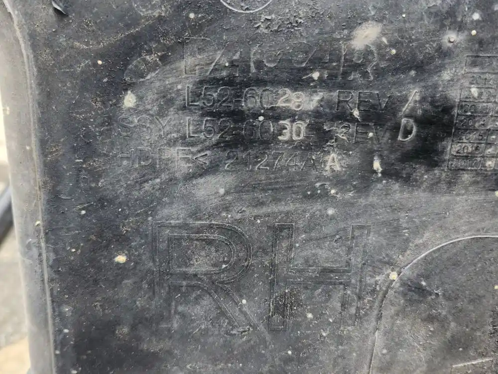 (Used) 2019 Kenworth T680, FENDER LINER HOOD- Part Number: L52-6030, Side: Passenger Right Side, Location: Hood, Color: Black, Material: Plastic, Reference images for condition,
