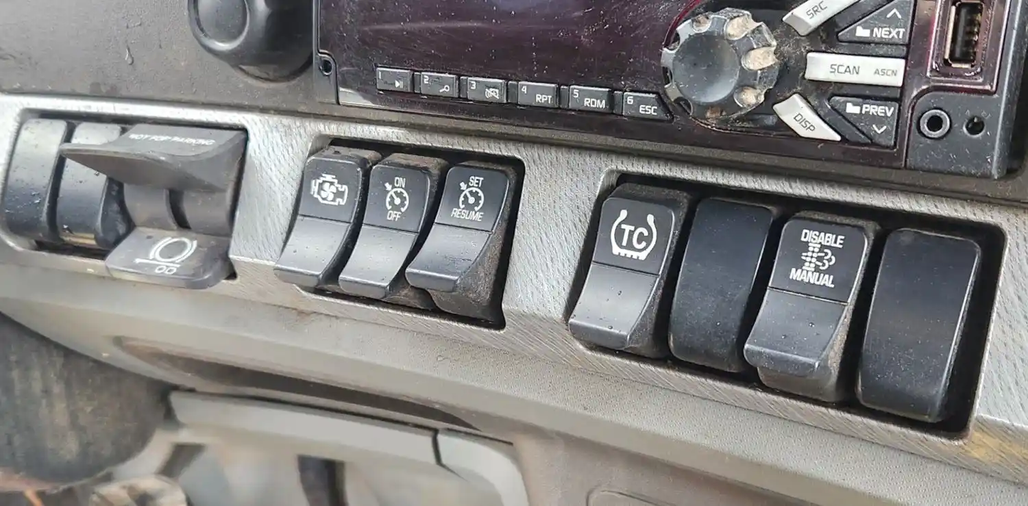 (Used) 2019 Kenworth T680, MISCELLANEOUS DASH SWITCHES- Controls: Not For Parking, Engine Fan, Cruise Control On/Off, Cruise Control Set/Resume, TC, Particulant Filter Regeneration, Material: Plastic, Reference images for condition,