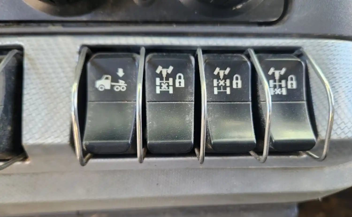 (Used) 2022 Kenworth T880, MISCELLANEOUS DASH SWITCHES- Controls: Air, Fifth Wheel Slide, Inter-Axle Diff Lock, Front-Axle Diff Lock, Rear-Axle Diff Lock, Material: Plastic, Reference images for condition,
