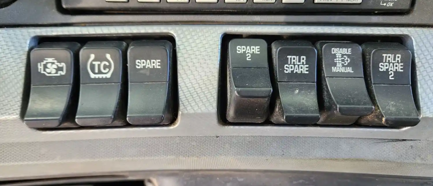 (Used) 2022 Kenworth T880, MISCELLANEOUS DASH SWITCHES- Controls: Trailer Spare 3, Trailer Brake (Not For Parking), Engine Fan, Off Road, Spare, Spare 2, Trailer Spare, Particulant Filter Regeneration, Trailer Spare 2, Material: Plastic, Reference images for condition,