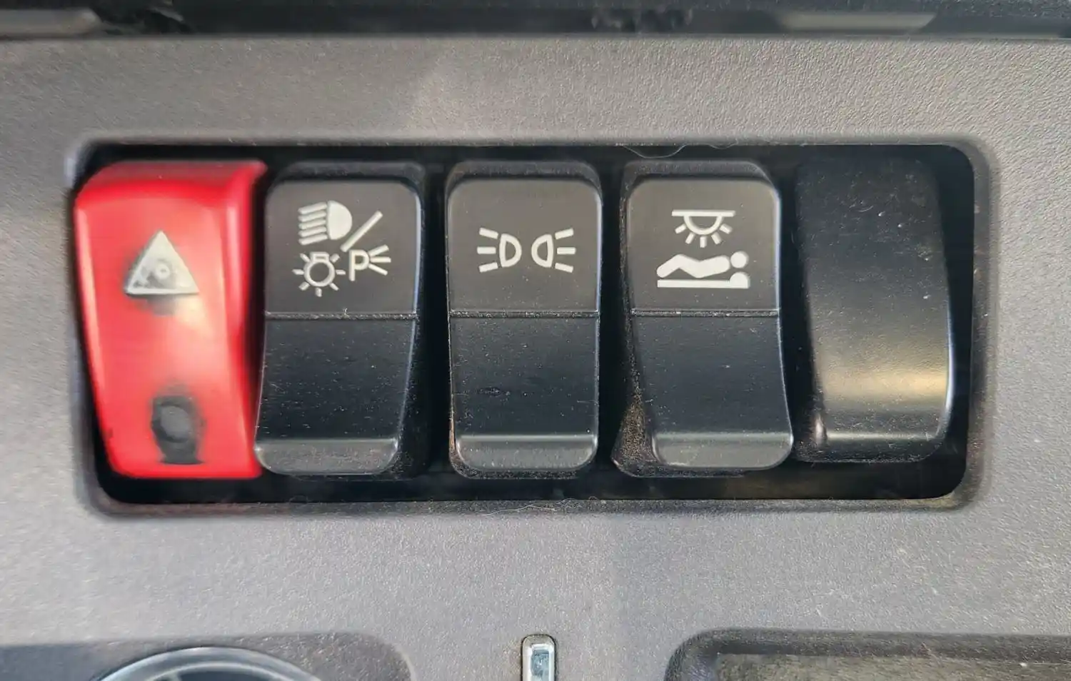 (Used) 2022 Kenworth T880, MISCELLANEOUS DASH SWITCHES- Controls: Hazard Lights, Headlights, Auxiliary Lights, Sleeper Lights, Material: Plastic, Reference images for condition,