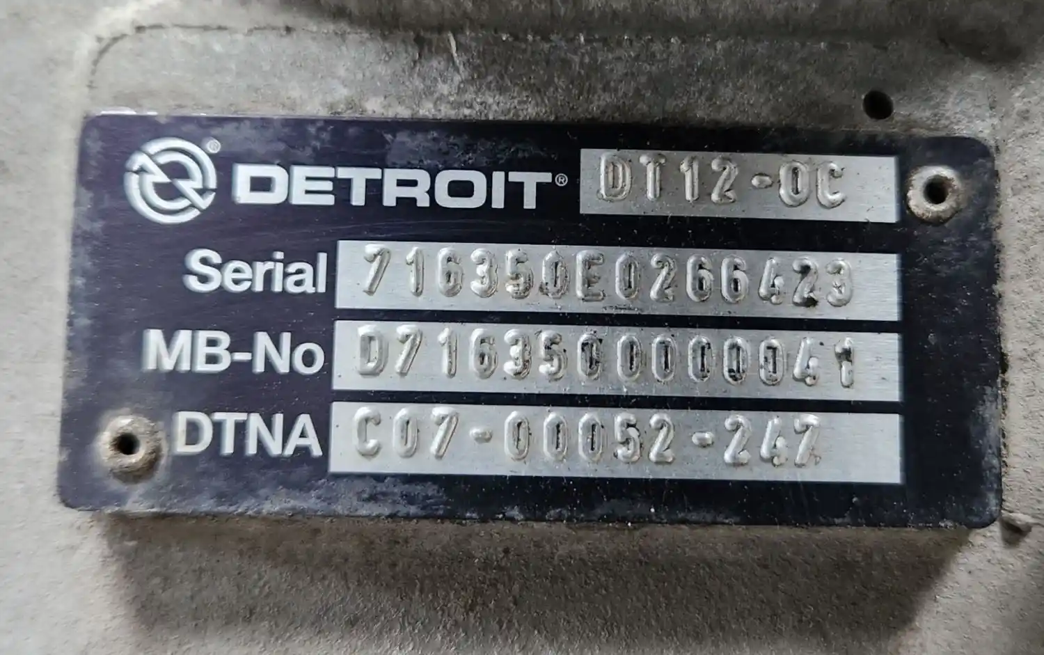 (Used) 2023 Detroit (AT), TRANSMISSION ASSEMBLY- Model: DT12-OC, Serial Number: 716350E0266423, Part Number: C07-00052-247, Engine: Detroit DD15,