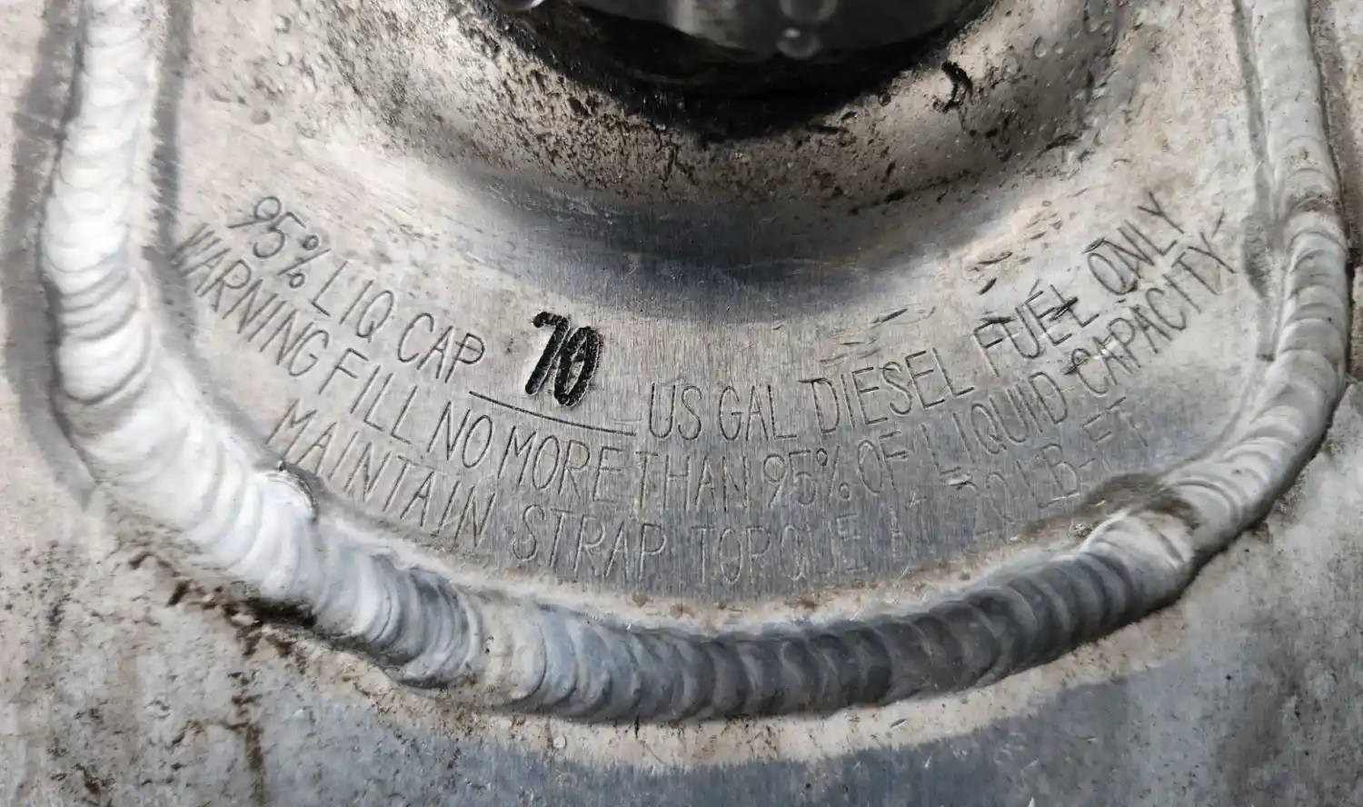 (Used) 2024 Kenworth T480, FUEL TANK- Side: Passenger Right Side, Capacity: 70 Gallons, Material: Aluminum, Shape: D, Dimensions: L=46", H=20", W=21 ½", It's Dented, Damage Reference images for condition,