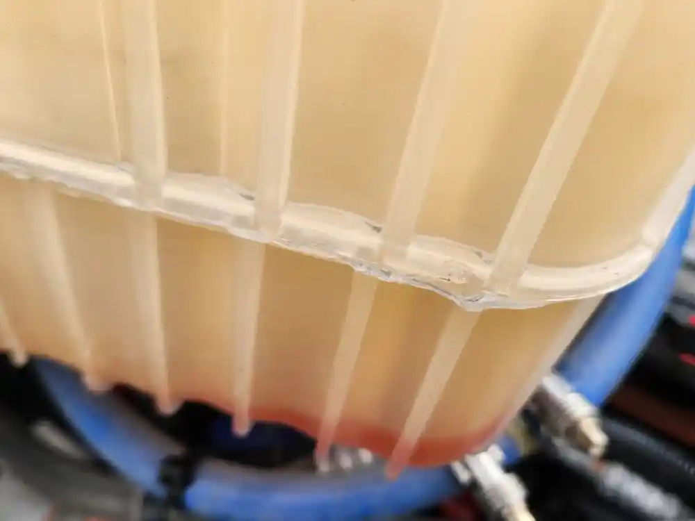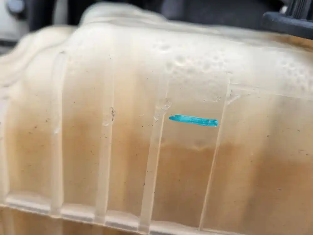 (Used) 2025 International MV607, RADIATOR OVERFLOW BOTTLE/COOLANT RESERVOIR- Location: Exterior Cab, Side: Passenger Right Side, Dimensions: L=20", H=8", Damage Reference images for condition,