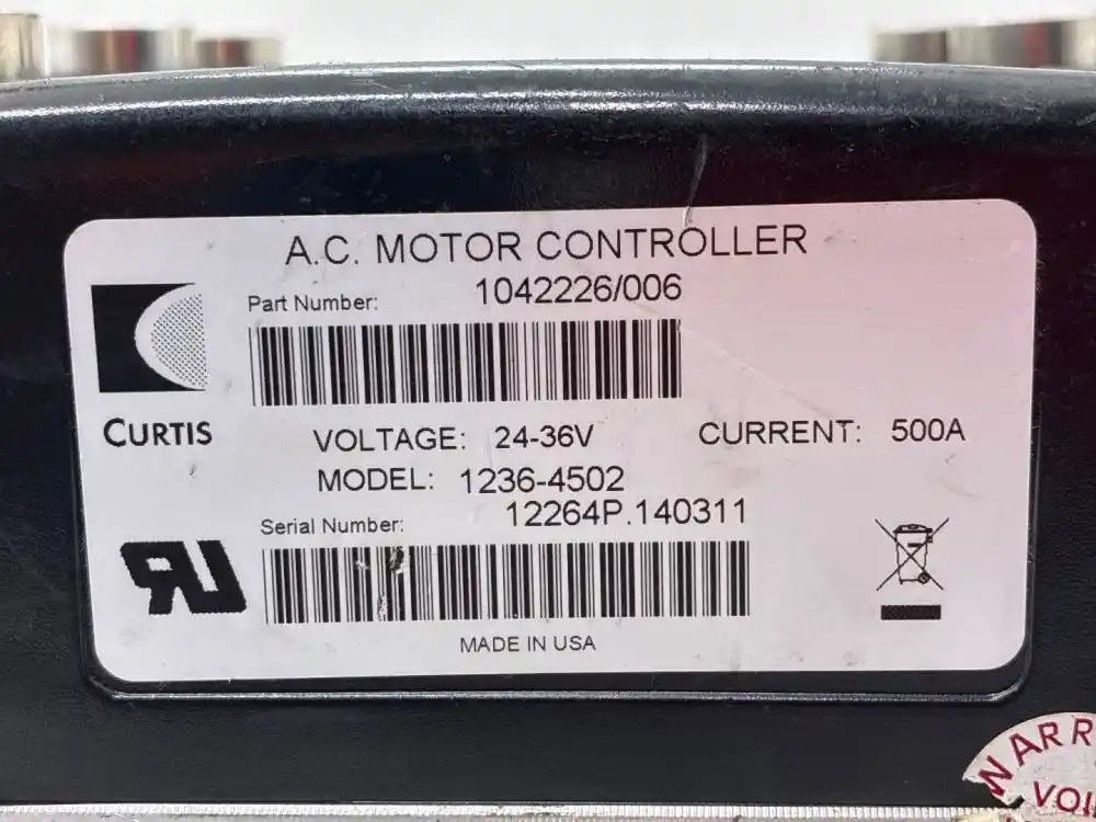 (Used) Control Modules, VEHICLE ECM- CURTIS: A.C. MOTOR CONTROLLER- Part Number: 1042226/006, Serial Number: 122647P.140311, Voltage: 24-36V, Current: 500A, Model: 1236-4502, 1 Rectangular Plug: 35 Pins,