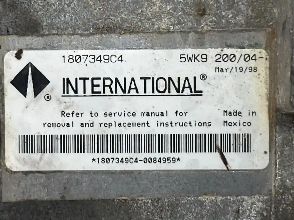 (Used) International DT466E ENGINE ECM- International 1807349C4, International 1807457C1, International 2593620C1, International 2593621C1, 1997-2000 International T444E, 1998-2000 INTERNATIONAL DT466E, 1998-2000 INTERNATIONAL DT530E, Part Number: 1807349C4, 5WK9 200/4, Serial Number: 0084959, 2 Rectangular Plugs with 60 Pins, Reference images for condition.